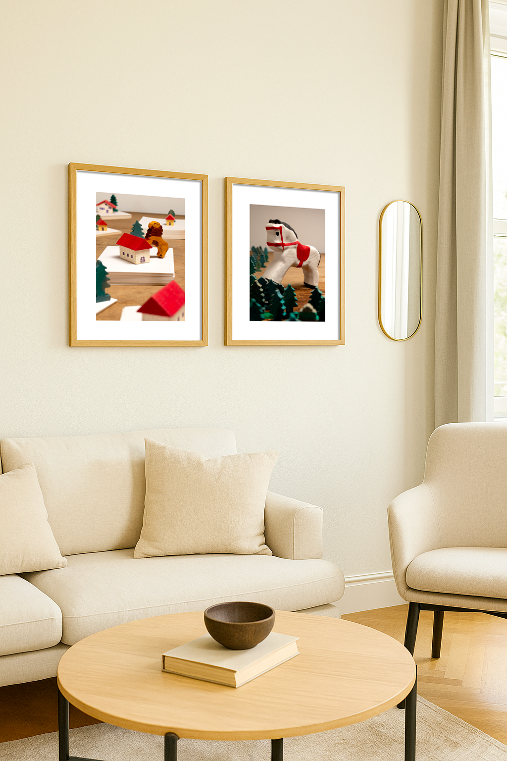 Ibridazioni è un progetto artistico fotografico nato l’incontro tra oggetti reali e paesaggi immaginati: cavallini, elefanti e altri protagonisti entrano in mondi surreali, creando scenari sospesi tra gioco e memoria. Un dialogo visivo che mescola materiali e segni, invitando a guardare l’arredo come spazio di racconto.