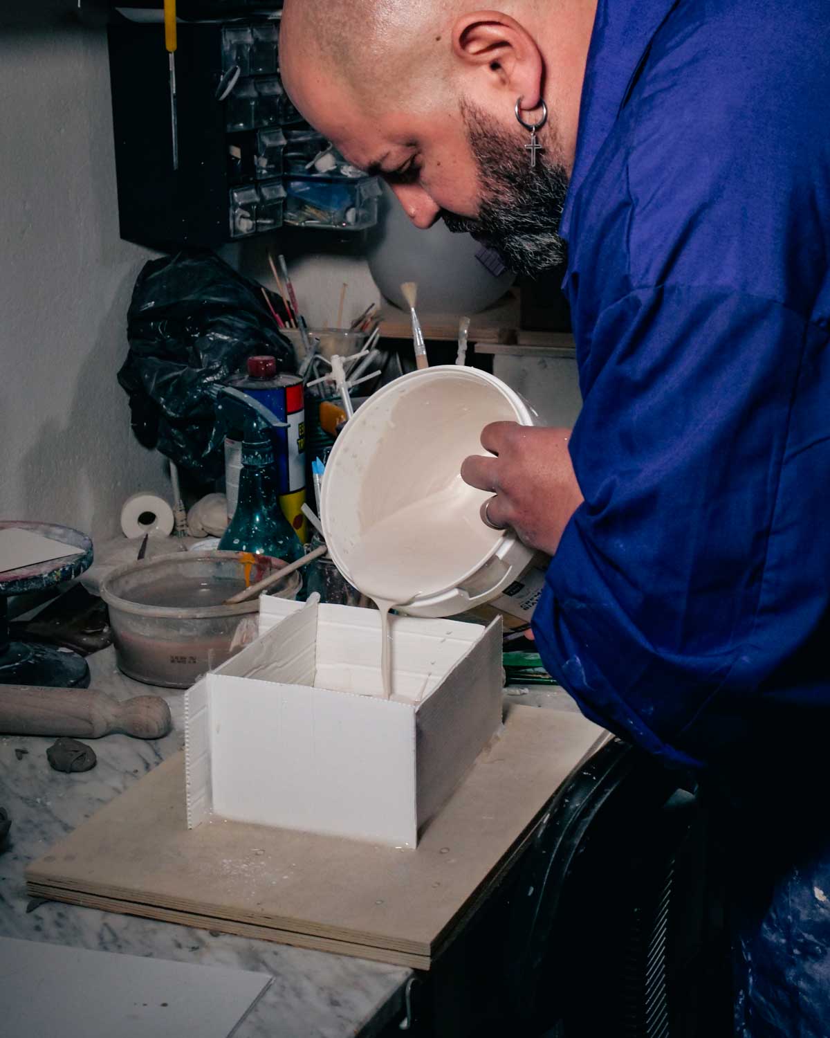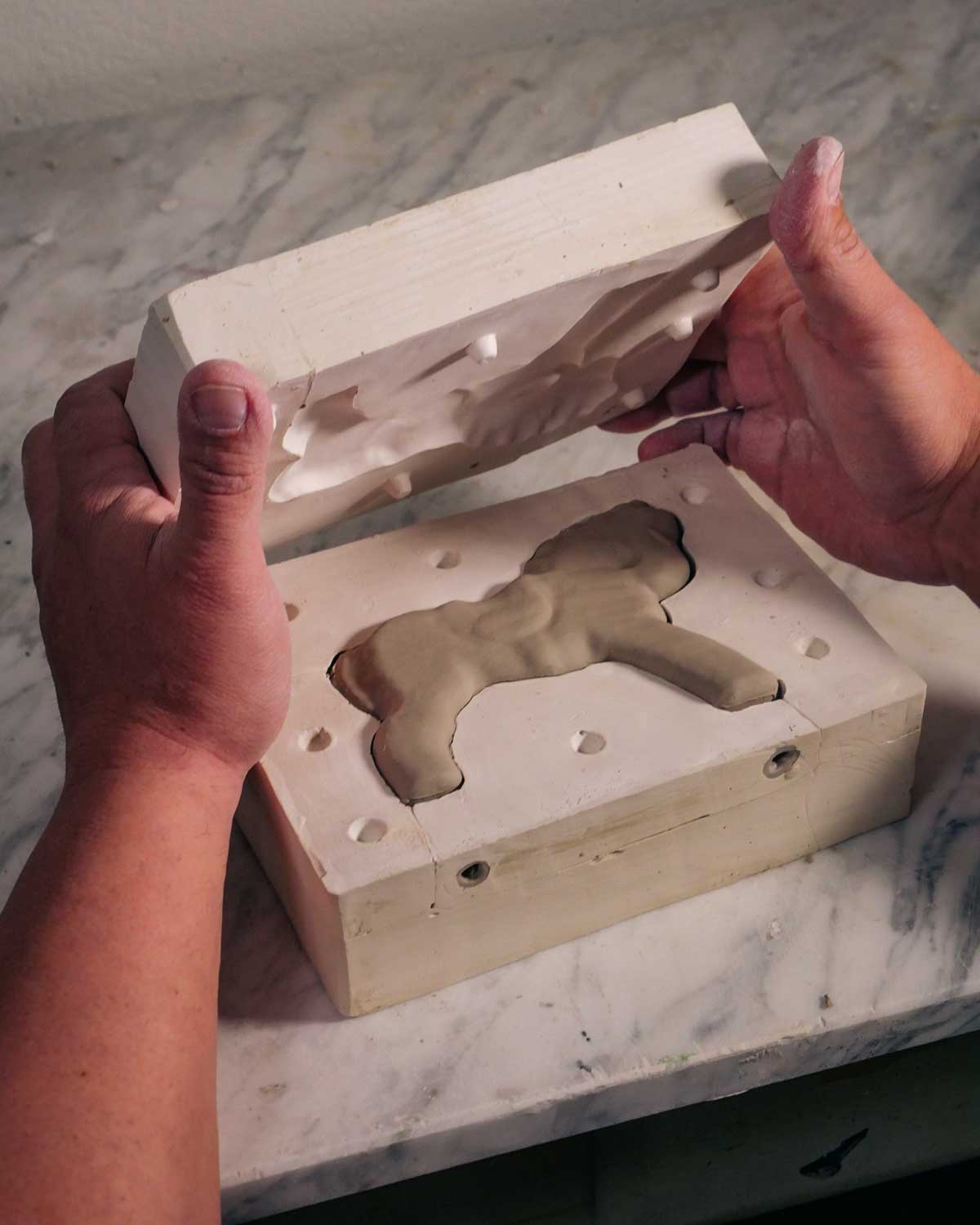 Questo percorso è stato reso possibile grazie a un dialogo continuo con l'artigiano, il cui confronto ha permesso di coniugare il mio immaginario con la loro esperienza e abilità tecnica. Ogni pezzo nasce da questa sinergia, dove le idee si concretizzano grazie alla maestria di chi lavora la ceramica con passione e precisione.