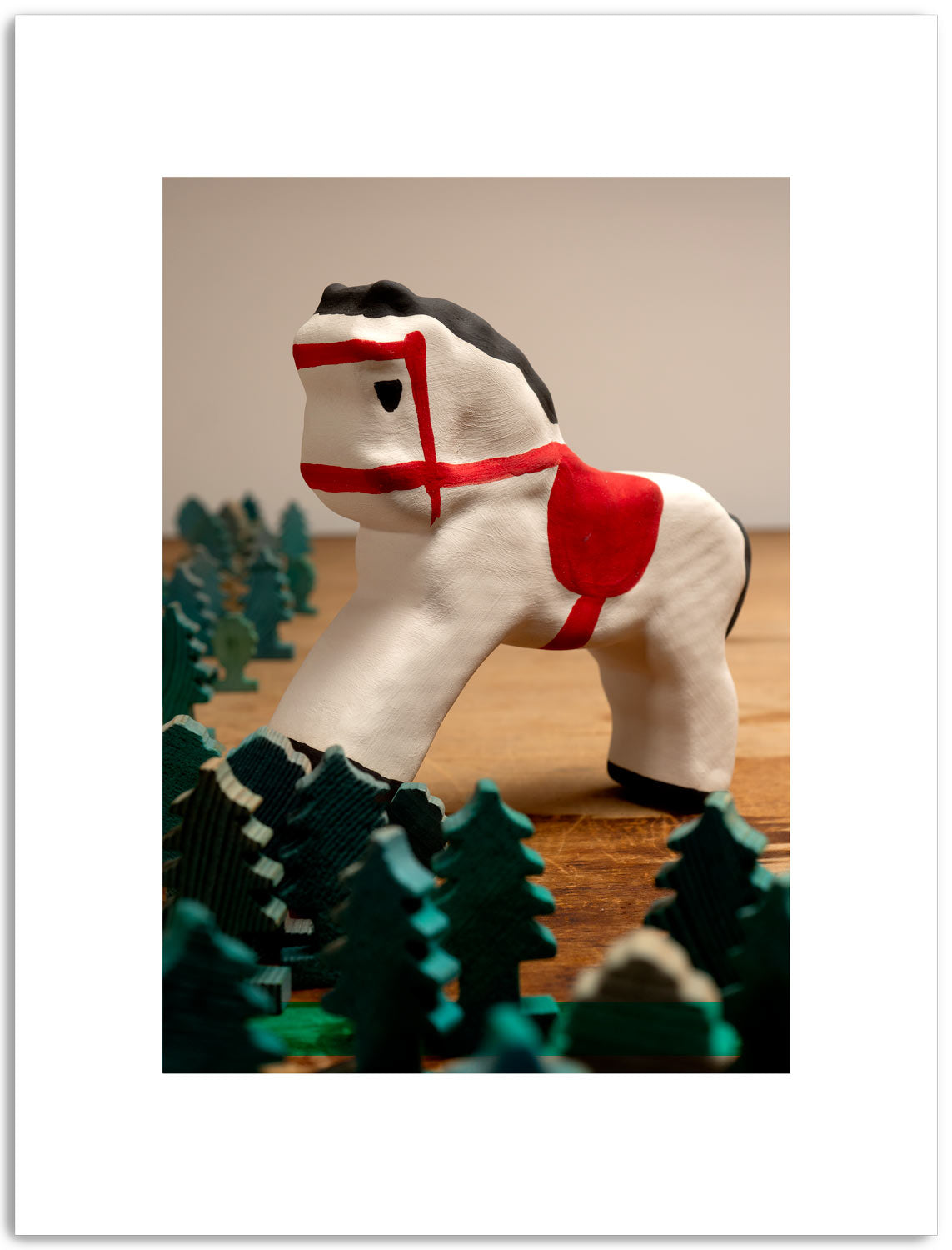 La prima collezione di ceramiche Memory Crafts è dedicata ai cavallini, con una gamma di colori che comprende il rosso, il nero, il bianco e una variante multicolore con corpo bianco, sella rossa e criniera nera. Ho scelto questa figura perché fin da bambino i cavalli hanno sempre stimolato la mia immaginazione: giocavo simulando gare e corse, dando vita a mondi fantastici. Crescendo, la mia passione si è arricchita di nuove suggestioni, soprattutto fotografando la sfilata di Sant’Efisio, dove i cavalli avanzano fieri tra le strade cariche di storia e tradizione. Da qui l’idea di reinterpretare questa figura in chiave decorativa, mantenendo intatto il senso di forza e movimento che da sempre la caratterizza.